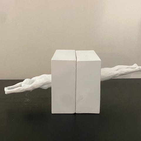 Akryylistä, eli pleksistä valmistettu kirjatuki, korkeus 23cm ja leveys 19cm. Pientä jälkeä pinnoilla, mutta ei ole käyttöä haitannut mitenkään. Siisti ja ehjä.