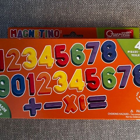 Quercetti magneettitaulu salkku. Salkussa on 46 magneettikirjainta, 12 magneettikuviota, kaksi telinettä ja puhdistussieni. Suositusikä 4+