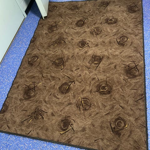 Musta, beigellä kuviolla oleva 130x200cm matto. Tekstiilipesurilla pesty.