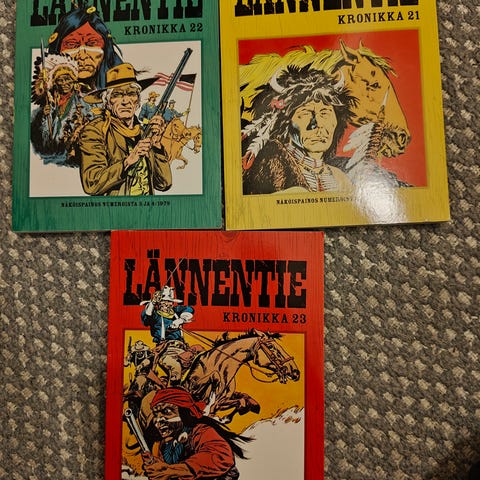 Lännentie kirjat eri numeroita ja kansikuvia.