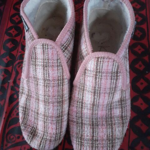 Reino tossut, koko 36-37 unisex. Tossut ovat vaaleanpunaruudulliset ja sisältävät pehmeän vuorin, joka tarjoaa lämpöä ja mukavuutta. Hieman koira päässyt puremaan sisällä olevaa joustinta, mutta ei haittaa käyttöä