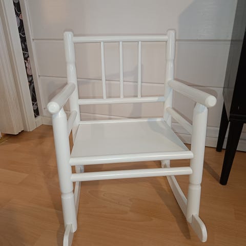 Pieneksi jäänyt puinen keinutuoli etsii uutta keinujaa jouluksi. Myydään vaikkei nimi täsmäisi.