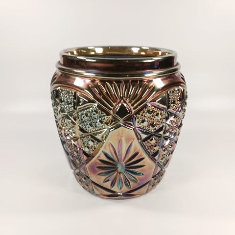 Lysteri lasimaljakko, jossa koristekaiverruksia. Maljakko on valmistettu lasista ja sopii sisustuskäyttöön. Maljakon pohjassa sormeen tuntuva lohkeama. On sen verran pieni että ei meinannut kamera siihen edes saada tarkennettua. Kuvissa erikseen kohta ympyröitynä. Maljakon pohjan leveys 8cm, levenee hieman ylös asti ylhäällä leveys 8,5cm. Maljakon korkeus 24,5cm. Mielellään nouto, postituksesta voidaan keskustella erikseen.