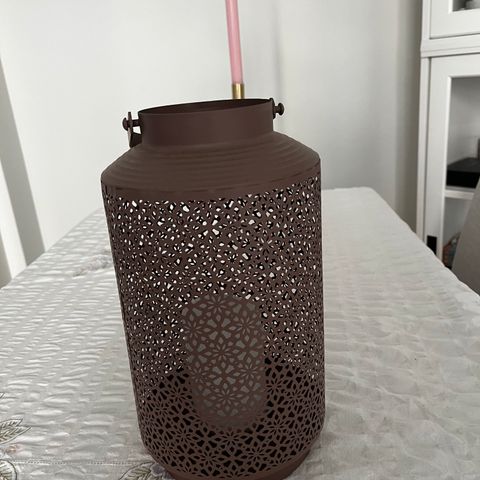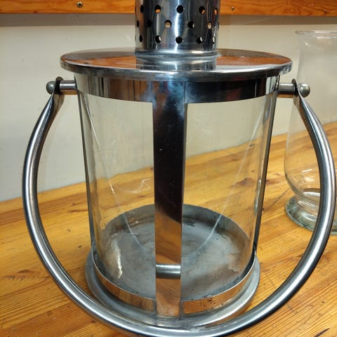 Lyhty , kuusikulmainen, metallikehyksellä ja kahvalla