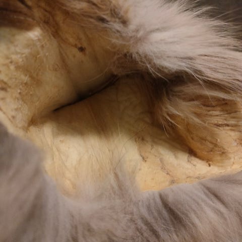 Wanha nahka. Toinen etujalka puuttuu.