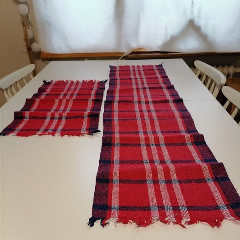Jouluun sopiva sievä, sinapinvärinen liina.