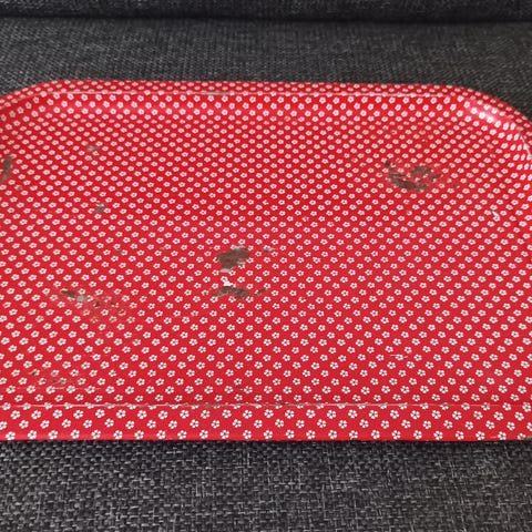 Vanha punainen "apila"/sydän tarjotin