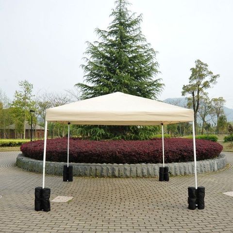 Tällaisessa paviljongissa ovat olleet. Puu kaatui rungon päälle, sivu verhot jäivät. Katto ei.