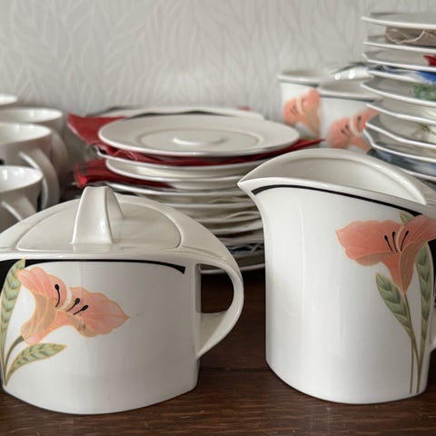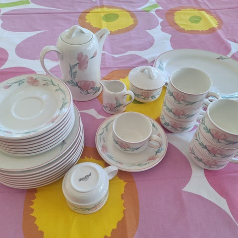 Myydään erinomaisessa kunnossa oleva Villeroy & Boch kahviastiasto settinä. Settiin kuuluu 6 kahvikuppia, 6 tassia ja kastikekulho alulautasella. Vain NOUTO