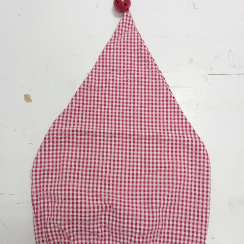 Uusi ompelijan valmistama tonttulakki musta-valkoisesra puuvillaneuloksesta. Sopii 38-40cm päänympärykselle. Lakin päässä valkoinen kulkunen.