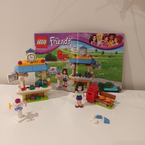 LEGO Friends Emman talo, 41095. Suuri määrä legoja, ohjekirjat (3kpl) ja alkuperäinen laatikko. Muutama pala puuttuu, näistä kuvat. Valkoista kapeaa palaa puuttuu 2kpl. Ohjekirjoissa ja laatikossa jälkiä.