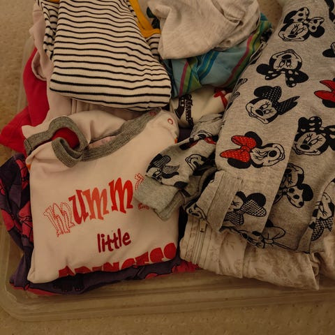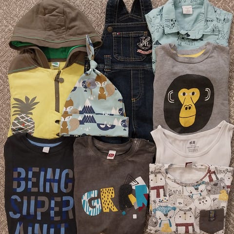 Lastenvaatepaketti — paljon vaatteita, hyvässä kunnossa. Lemmikkivapaa koti.