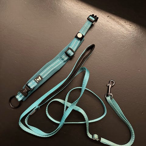 Myydään lila pennun ensi panta ja siihen sopiva lyhyt hihna. Tarkka mitta ei tiedossa, mutta ehkä n. vajaa 150 cm - joka tapauksessa normitalutinta lyhyempi.