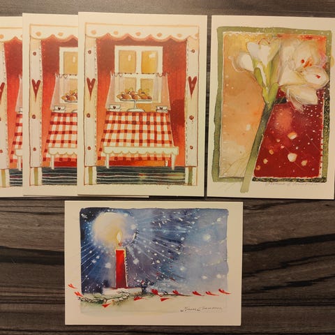 2-osaiset joulupostikortit 5kpl Minna Immonen