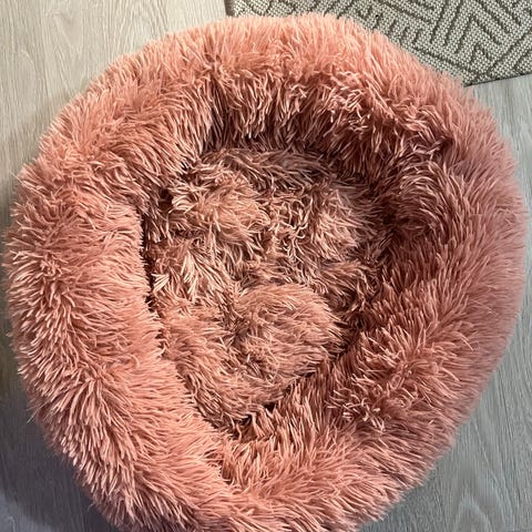 Calmbed pörröpeti 70cm (suositus 5-15kg koirille). Käytetty hartaasti, joten keskiosasta karva vähän huopunutta, silti edelleen muhkea ja pehmeä. Voi pestä kokonaisuudessaan pesukoneessa. Nyt pikaisen imuroinnin jäljiltä, karvaa varmasti tulee silti mukana. Nouto Tikkakoskelta.