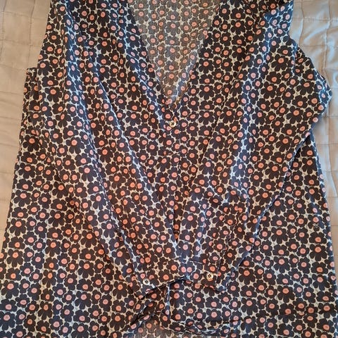 Myydään Marimekon beige/vaaleanruskea Värssy paita, koko 40.