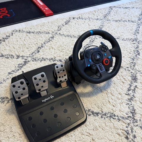 Logitech G29ohjauspyörä ja polkimet musta. Ohjauspyörä sisältää useita painikkeita ja säädettävän jalustan. Polkimet sisältävät kaasun, jarrun ja kytkimen. Sopii simulaattoripelaamiseen ja ajokokemuksen parantamiseen. Toimii PS4 ja PS5. Teline trusmaster GXT sarjaa.