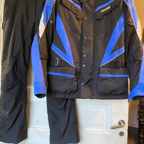 Housuissa toisessa lahkeessa putken polttama ja reidessä muutama pieni reikä. Näkyy kuvissa. Kuva hämää että lahje olisi harmaa, on musta.