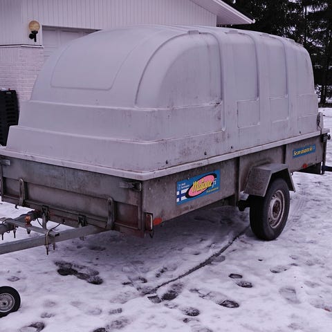 Kulunut, mutta toimiva peräkärry, pressu lähes uusi.