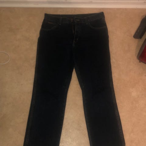 Wrangler Texas farkut, sininen väri, koko W35 vyötärö ja L32 lahkeen pituus. Materiaalina denim. Miesten malli.
