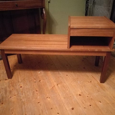 Hyvässä kunnossa oleva 60-luvun puhelinpöytä. Avain tallella laatikkoon. Nouto Kaarinan Littoisista.