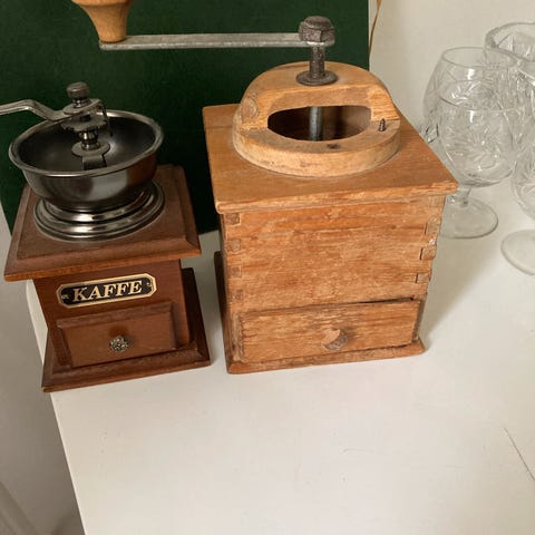 Perinteinen kauppiaan kahvimylly, joka toimii voimavirralla. Painoa 50 kg.