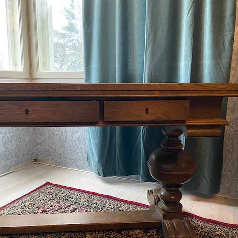 Myydään laadukas tamminen työpöytä (ASKO:sta ostettu).