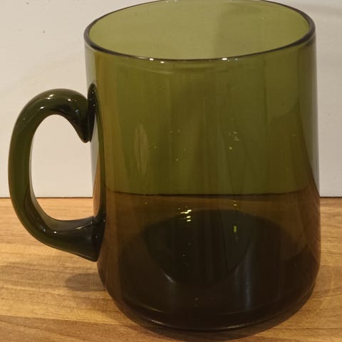 Kaj Franckin vuonna ensimmäisenä käyttölasisarjana julkaistun Tupa-sarjan lasimukit/tuopit vuodelta 1948. Väri sammaleenvihreä. Hämmästyttävän hyvässä kunnossa ikäisekseen, lähestulkoon käyttämättömän oloiset. Korkeus 8,5 cm, halkaisija 8,5 cm. Neljä kappaletta saatavilla, hinta yhteensä.