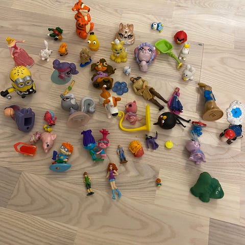 Kokoelma erilaisia leluhahmoja, mukaan lukien ratsastaja sinisellä hevosella, keijuhevonen sekä kaksi muuta hevosta. Lelut sopivat lasten leikkeihin ja keräilyyn.