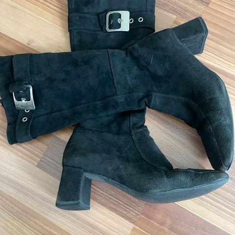 Mustat mokkanahkasaappaat / saapikkaat / ylipolven saappaat aitoa nahkaa.