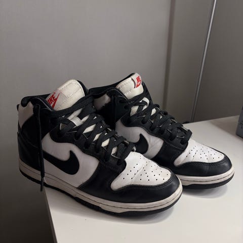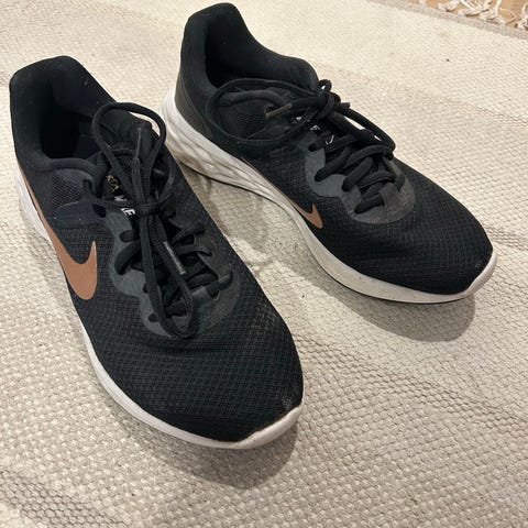 Käytetyt Nike air tennarit, joissa normaalia kulumaa, kengät nahkamaista materiaalia.