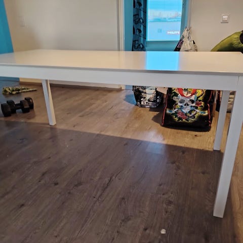 Ruokapöydän mitat: Korkeus 75cm ja leveys 85cm pituus 161cm
