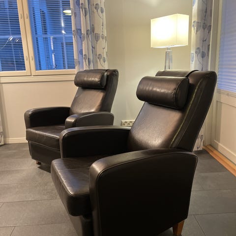Laadukkaat Suomessa tehdyt nojatuolit. Eivät nukkaannu. Erittäin kestävät. Ovh. 1000 e per yksi nojatuoli.