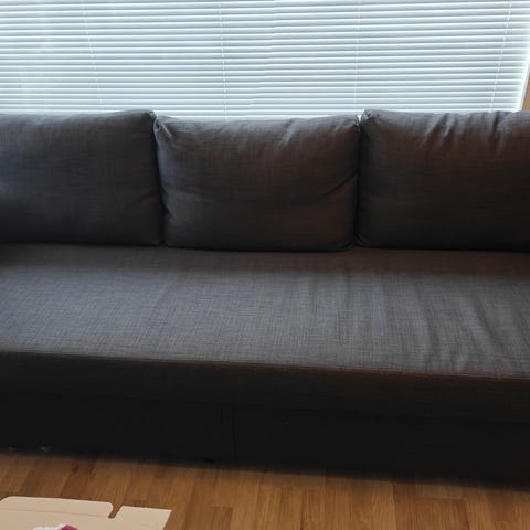 Kunto siisti, ei kummempaa moitetta. Sohvan sisällä iso säilytystila esimerkiksi petivaatteille. Helppo ja nopea levittää ja laittaa kasaan. Mukaan saa patjasuojuksen.
