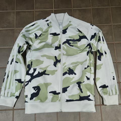 Adidas verkkatakki koko 128. Käytetty ja kunto muuten hyvä, mutta muutamia langannousuja löytyy. Ne ei sinänsä haittaa käyttöä.