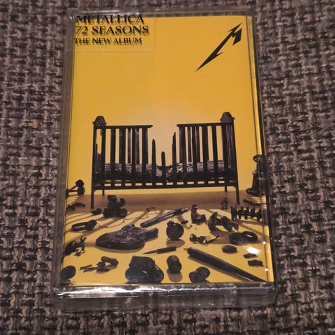 Metallica 72 Seasons keltainen kasetti, avaamaton U.K. painos. Nouto Espoosta tai postit päälle.