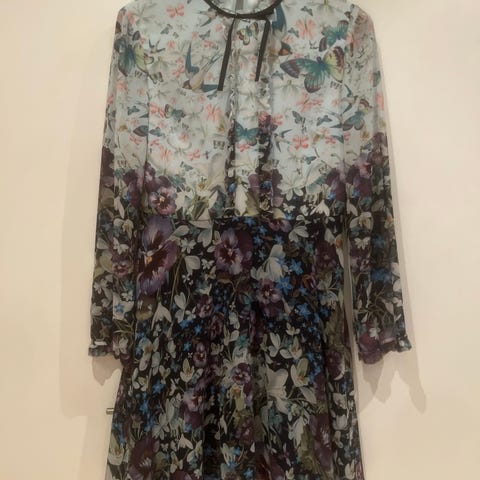 Ted Bakerin kaunis, pitkä kukkamekko. Hieno vaikkapa nahkatakin kanssa tai villakangastakin kanssa.