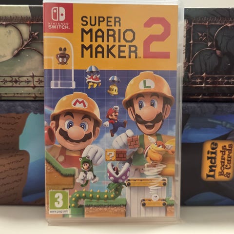 Nintendo Switch Super Mario Maker 2 peli. Peli sisältää fyysisen pelikortin ja kotelon. Peli on suunniteltu Nintendo Switch -pelikonsolille.