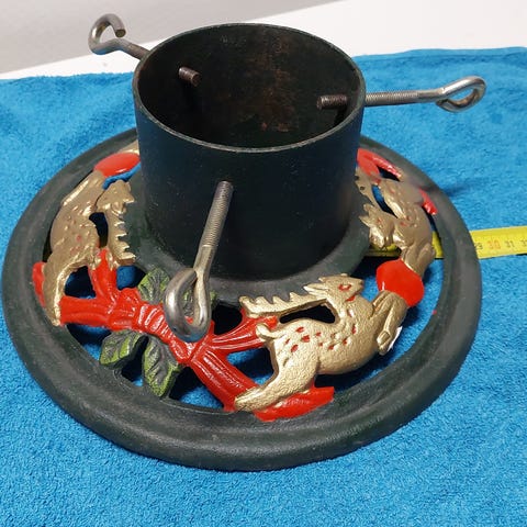 Kolme metallista, painavaa joulukuusenjalkaa;2 kpl tosi vanhaahaa ja yksi uudempi malli.
