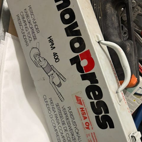Myydään uusi hydraulinen kaapelikenkäpuristin säilytyskotelolla. Sisältää 4, 6, 10, 16, 25, 35, 50 ja 70mm2 puristusleuat. Tekee 8 kulmaisen puristusmuodon.