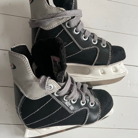 Luistimissa on jonkin verran käytön jälkiä, mutta ne ovat edelleen napakat rakenteeltaan. Luistimet on teroitettu viime talvena, joten näillä luistelee vielä pitkään.