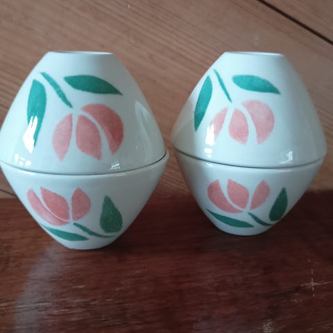 Pentikin purppuranvärinen ❤️ muotoinen kippo sekä Vaniljasarjan kippo korkeus 5 cm, halkaisija 11 cm.