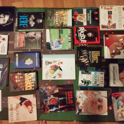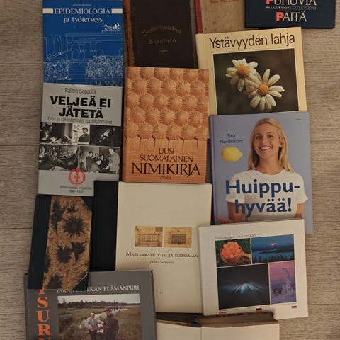 Myynnissä on kirjakeräilijän laaja ja monipuolinen kokoelma, jossa riittää tutkittavaa ja löydettävää. Valikoimaa on poliittisesta historiasta hyvinvointiin, taiteesta luontoon, harrastuksiin sekä lasten ja nuortenkirjallisuuteen – ja lähes kaikkea siltä väliltä.