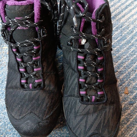 koko 40, sisäpit. 25cm, vettähylkivä päällinen water repellent, sisäpuolella karvainen lämmin fleecevuori.