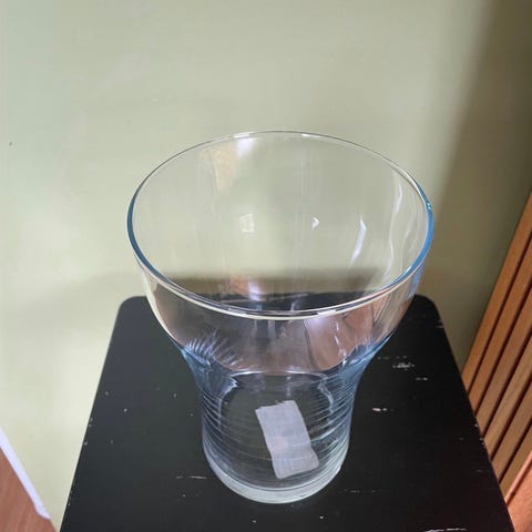 Kirkas väritön lasimaljakko, korkeus 30 cm, syvyys x leveys 15x15. Kaunis oksille ja isoille kukkakimpuille.