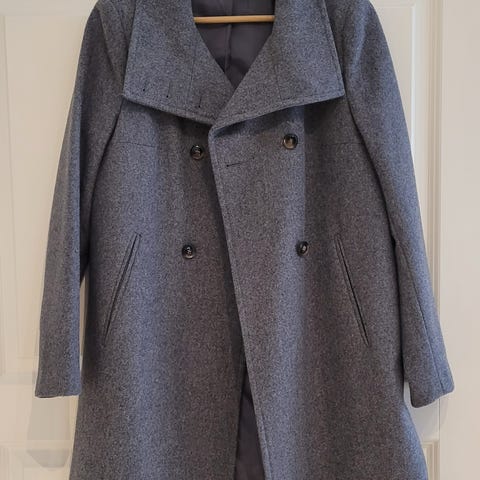 Siisti tummanharmaa Benettonin villakangastakki. Sivuilla taskut, vuorissa varanappi. Kauluksen voi pitää matalana tai nostaa pystyyn. Italian koko 42, vastaa kokoa M/38. Myydään tarpeettomana.