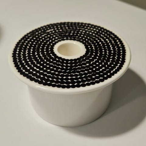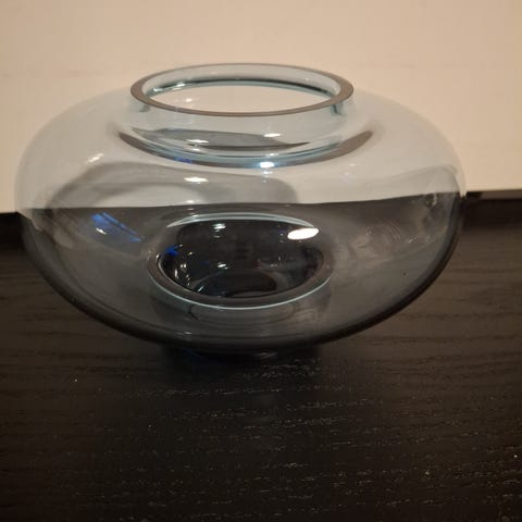 Käyttämättömänä vitriinissä säilytetty kirkas Fyr tuikkuastia.