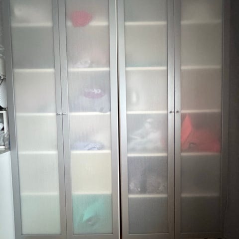 Jokaisen kaapin sisällä on reikä johdoille sekä kaksi tai kolme erittäin tukevaa hyllyä, jonka paikkoja saa vaihdeltua tarpeen mukaisesti. Yhden pienen kaapin lattiatuki puuttuu, mutta ollut itsellä toisen kaapin päällä eikä ole haitannut.