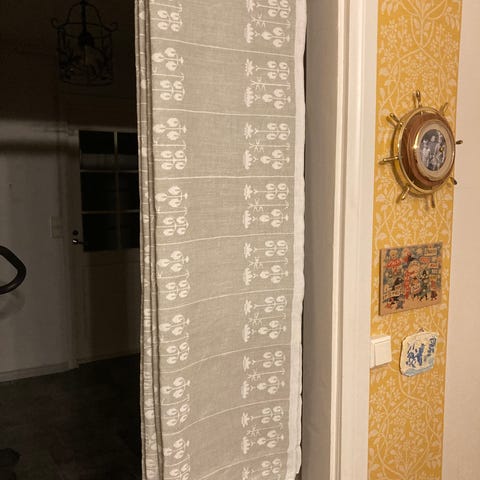 Liina on yli 50 vuotta vanha. Materiaalitietoja ei ole, mutta hyvin silittyvä, kahdella pisteellä.
