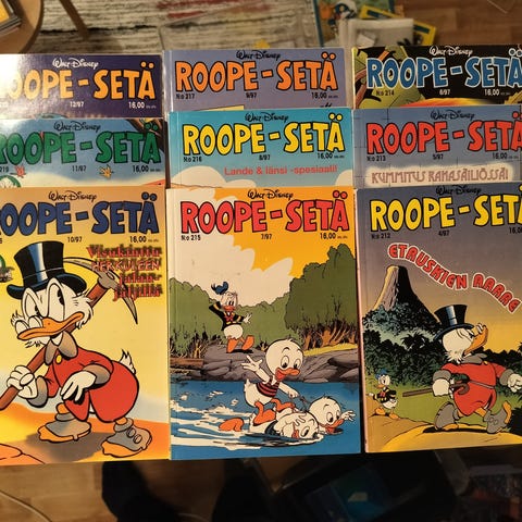 Myydään iso kokoelma Roope-setä -lehtiä, yhteensä 156 kappaletta. Numerot: